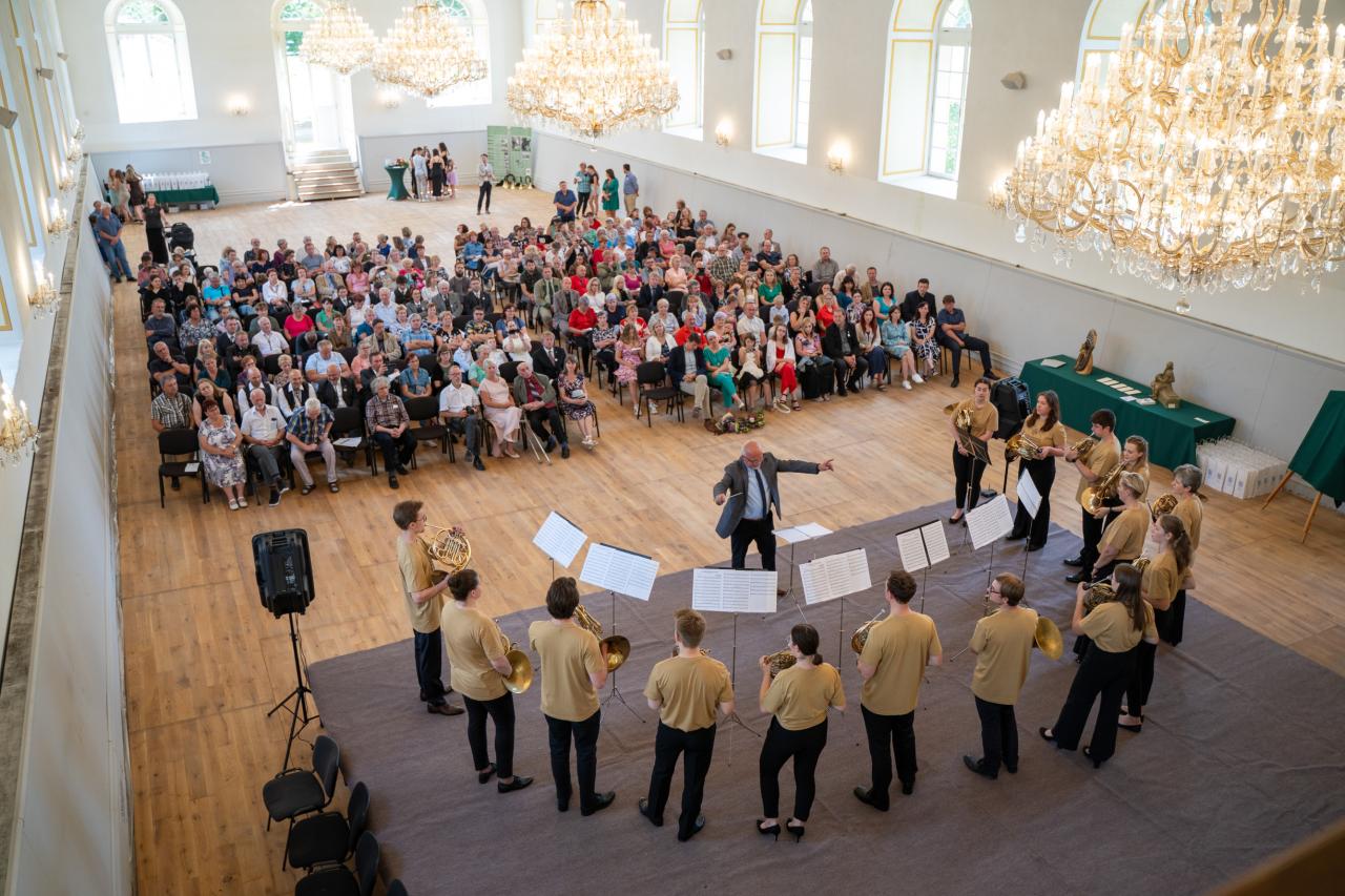 Slavnostní koncert, zámecká jízdárna. Vystoupení Souboru hornistů Letních hornových kurzů Broumov.