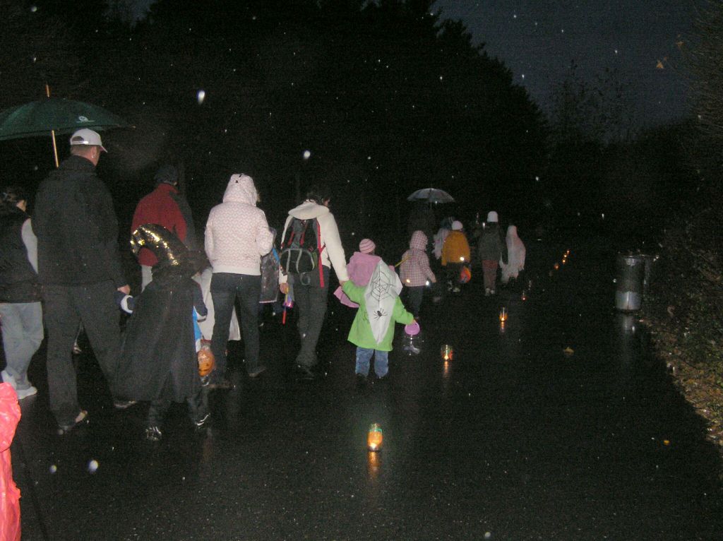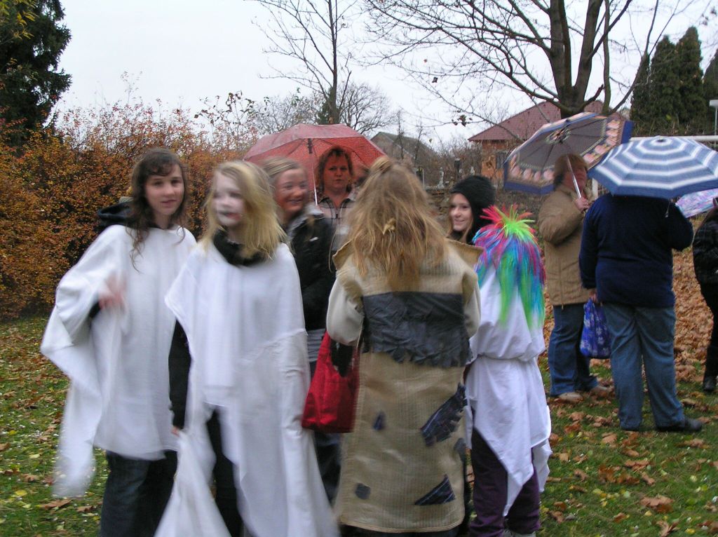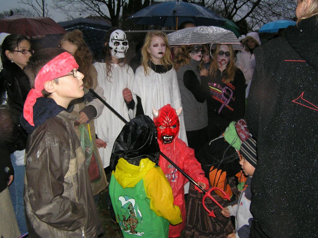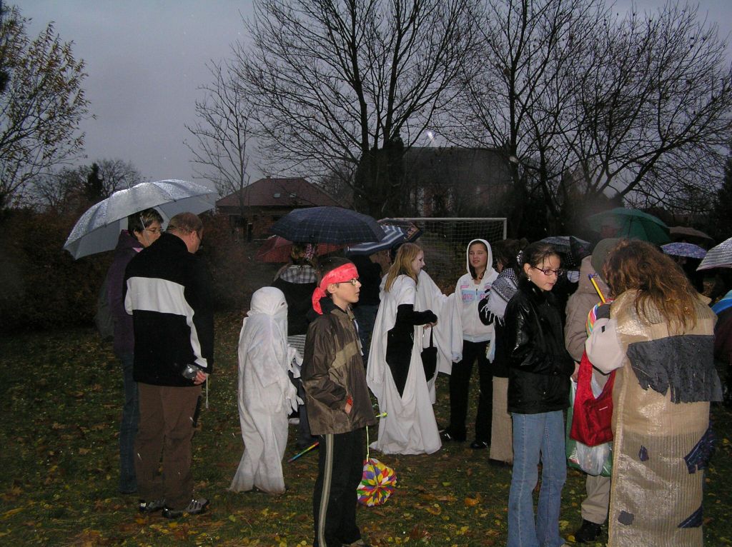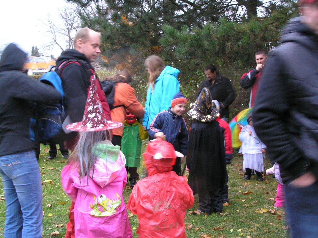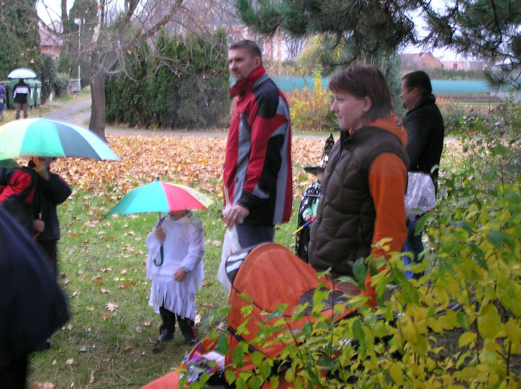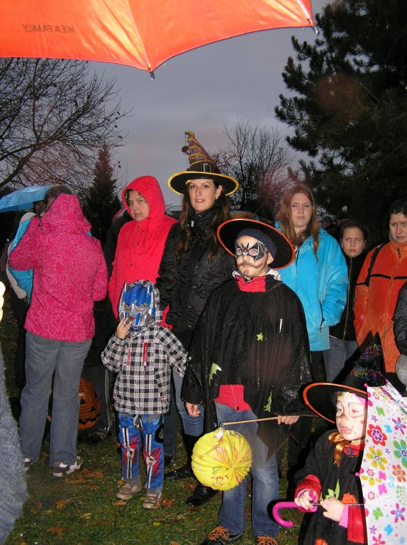 Všem strašidlům a bubákům děkujeme za účast na sletu i za tak příšerného počasí! Pršelo, jen se lilo! Věříme, že rozmáčené oblečení, líčení i lampiony nezkazily radost z hledání rozsvícených dýní, strašidelného lesa a jiných aktivit připravených u místní základní školy. Snad i teplý čajík a magické občerstvení pozvedlo všem přítomným "vodníkům" náladu. Tak příští rok se těšíme zase ve stejné sestavě - strašidlákům ZDAR!
